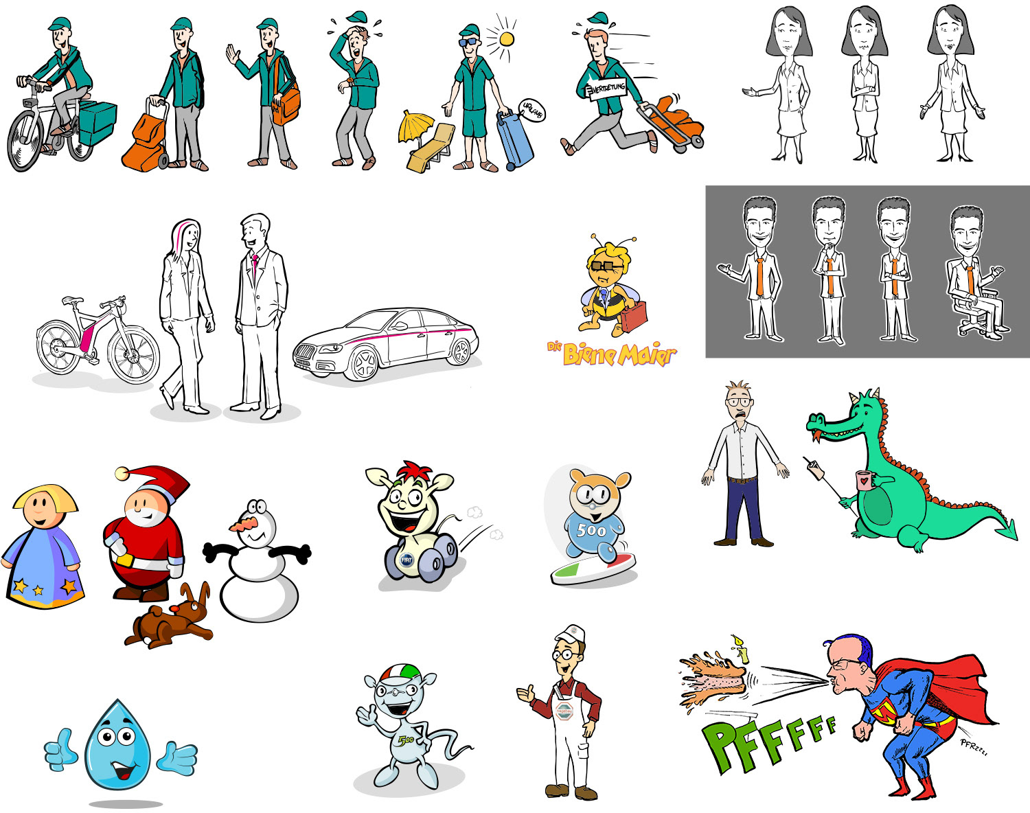 Diverse Entwürfe für Comicfiguren